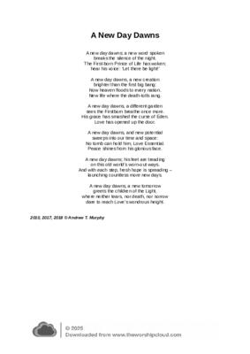 This new Easter hymn, with a new tune written by Matt Allen, imagines the resurrection as the in-breaking of God's New Creation into the old. It follows the ancient Christian belief that the resurrection of Jesus heralded the Eighth Day of Creation - now everything has changed, God is making all things new, and not even death can separate us from God's love in Jesus Christ.