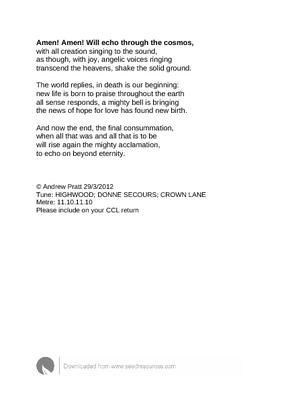 © Andrew Pratt 29/3/2012 Tune: HIGHWOOD; DONNE SECOURS; CROWN LANE