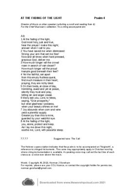 Based on Psalm 4, this hymn reflects the Psalmist's prayer of trust in God , who will bring deliverance from distress.