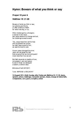 14 August 2011, Ninth Sunday after Pentecost, Matthew 15: 21-28, hymn,