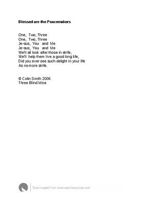 What can be done to enrich the worship of a congregation where the only reliable music comes from a digital hymnal or CD? What if there are young children present, for whom formal hymns or songs would be inappropriate? One answer is to write Christian words to well known and out of copyright tunes – then teach it to them. This piece was written for a school assembly and subsequently used in All Age worship in just those circumstances. In both situations the theme was “Children as Peacemakers” The words fit the tune “Three Blind Mice” fairly well, though you may need to sing it through yourself a few times – or rehearse a few good singers to lead the rest.