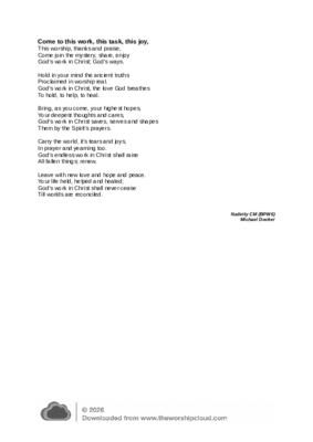 Come to this work, this task, this joy,