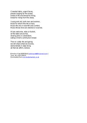 Crowded table, urgent faces - Post Easter Communion Hymn