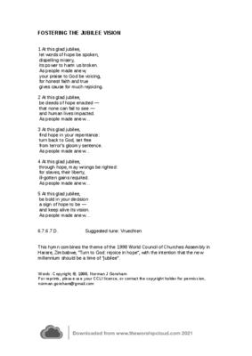 This hymn was written for the millennium, but would be suitable for use by any individuals or communities resolving to become "jubilee people".