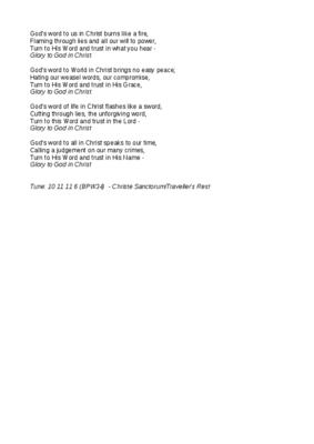 Tune: 10 11 11 6 (BPW34) - Christe Sanctorum/Traveller's Rest