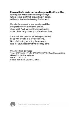 Tune: EPIPHANY HYMN; BARNARD GATE (John Barnard; Sing Glory 433; Jubilate web-site)