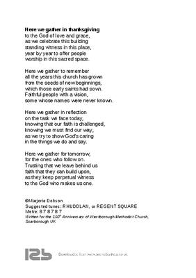 Suggested tunes: RHUDDLAN, or REGENT SQUARE