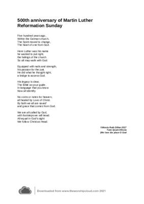 Hymn written for 500th anniversary of Martin Luther. Can be used anytime to remember the Protestant Heritage.