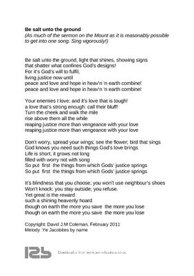 (As much of the sermon on the Mount as it is reasonably possible to get into one song. Sing vigorously!)