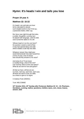 18th Sunday after Pentecost, Matthew 22: 15 – 22, Pharisees, Herodians, cunning, mailice, questions, intellect, taxes, coin, Jesus, Caesar, answer, debt