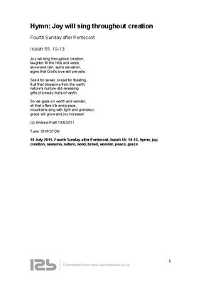 Fourth Sunday after Pentecost, Isaiah 55: 10-13, hymn, joy,