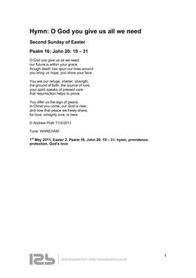 Hymn: O God you give us all we need
