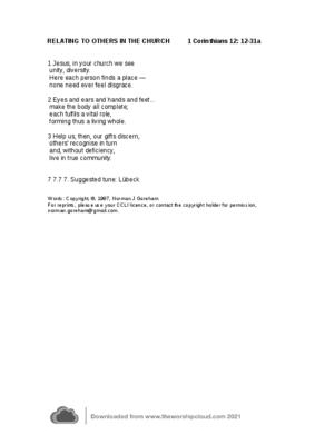 Based on Saint Paul's image of the body, this is a hymn about inclusiveness. In the church, Christ's body, each person has a place.