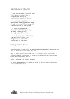 This hymn paints a picture of our present ecological disasters and stresses the need for stewardship of the earth's resources