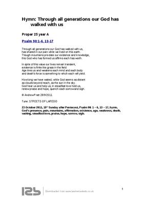 19th Sunday after Pentecost, Psalm 90: 1 – 6, 13 – 17, hymn, God’s presence, pain, mountains, affirmation, existence, age, weakness, death, waiting, steadfast love, praise, hope, sorrow, sigh.