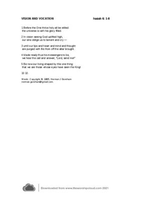 This hymn recalls Isaiah's vision in the Jerusalem Temple and his call and response. It then expresses the wish that our response may be equally life-changing.
