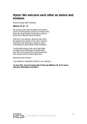 Second Sunday after Pentecost, Matthew 10: 40-42, hymn,