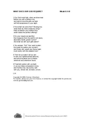 This hymn revisits Micah 6: 6-8 with its call for justice, compassion and humility.