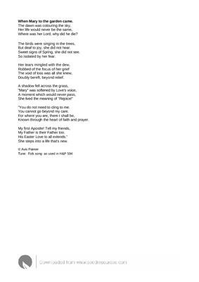 When Mary to the garden came.