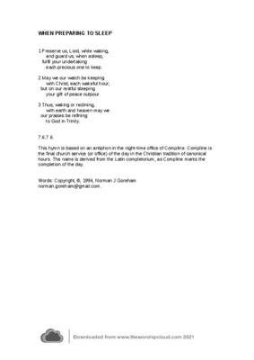 This hymn is based on an antiphon in the night-time office of Compline. Compline is the final church service (or office) of the day in the Christian tradition of canonical hours. The name is derived from the Latin completorium, as Compline marks the completion of the day.