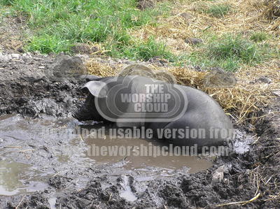 Image of a pig enjoying the luxury of a mud bath!