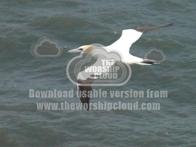 A Gannet Soars over the Sea keeping one beady eye on the camera as it does so...