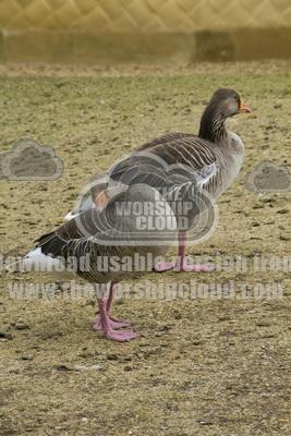 Two greylag geese having a good clean