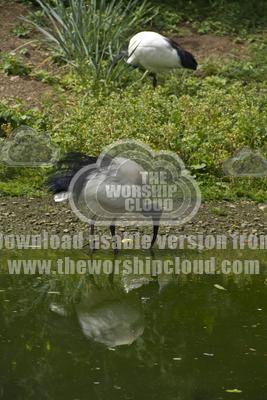 Lovely birds the white sacred ibis at the edge of a lake