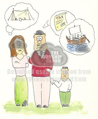 Having sold all his possesions and given the money to the poor the Thessalonian writes to Paul, complaining that his family are naffed off with him and that the taxman is chasing him. Paul asks whether he has considered working for a living?