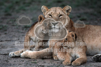African lioness & cubs, Masai Mara Reserve, Kenya