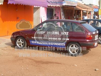 Image of a Religious/Business slogan: 'Amen Driving Inst.' a car advertising a driving school at Adenta, Accra, Ghana.