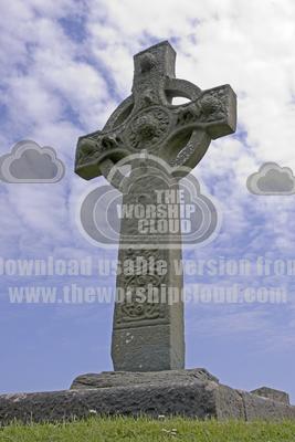 • St John's celtic cross outside Iona Abbey off south coast of Isl