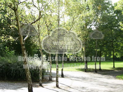 Birchwood in the early Autumn sunlight birch trees delicate and reflecting sun light. Digital photograph by Audrey Hogan