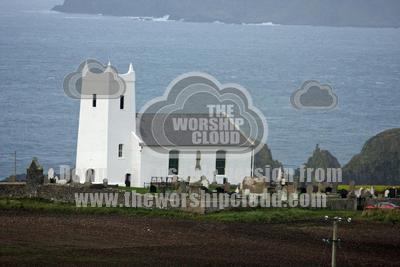 Church on teh coast of Northern Ireland opposite Rathlin Island