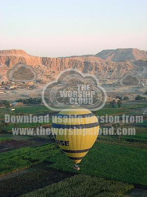 This picture was taken from our balloon looking towards the mortuary temple of Hatshepsut. Our first balloon flight in Luxor landed here, right in front of the Colosal of Memnon