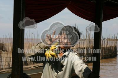 Your boy selling bananas to visitors. Tonle Sap floating village, Cambodia