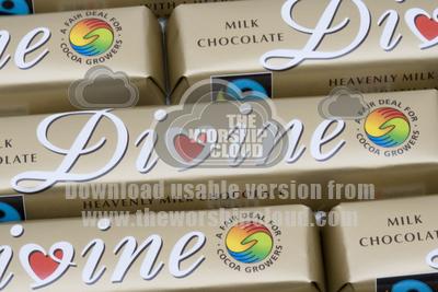 Bars of fair traded Divine chocolate with Fairtrade logo