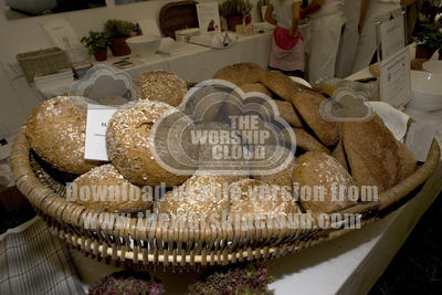 Basket of organic bread at Moreton-in-Marsh agricultural show, September 2005, Cotswolds, UK.