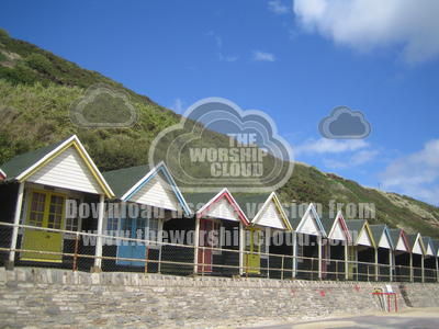 Boscombe Beach, Bournemouth. Colourful beach huts.