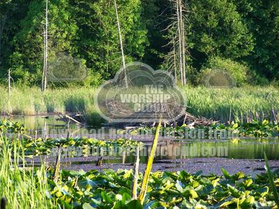 Beaver lodges on a lake