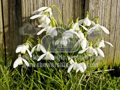 The snow has gone and the sun is out shining on this clump of white snowdrops