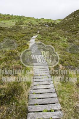 Board walk to protect vegetation in Ben Lawers National Nature Reserve, Scotland. Note gradual return of trees and rich growth of varied flora following fencing out of deer and sheep.