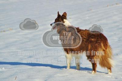 • Portrait of Welsh border collie sheep dog lying down Cotwsolds U