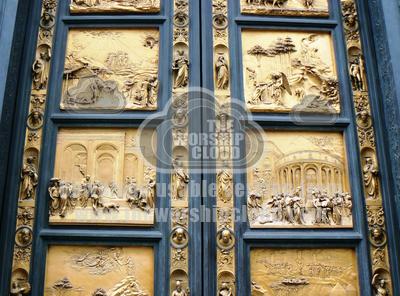 Florence - replica of the 15th century Ghiberti gilt bronze paneled doors depicting scenes from the bible