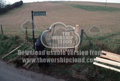• Footpath leading into field of buttercups Cotswold escarpment UK