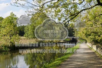 Autumn sunlight on the Leeds and Liverpool Canal near Hirst Lock