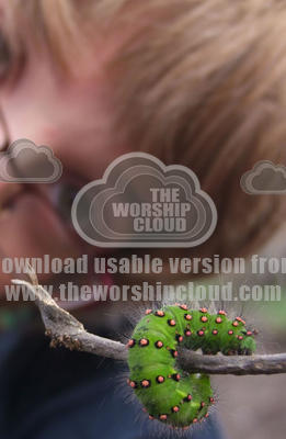 boy marvelling at caterpillar