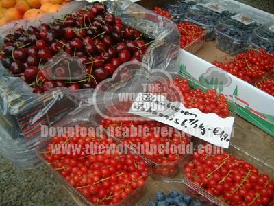 Recurrants and cherries at a market stall in Munich Close up of a beech hedge, October, Kent.