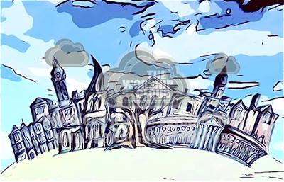 Pencil and digital recreation of Chesterfield skyline