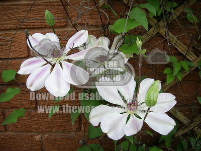 Beautiful flowering climbing plant, a present from a friend lives up to expectation.Never cut the dead wood back because if you do you will not get any flowers next spring. All new flowers grow from the dead wood.!! captured on digital camera by Audrey Hogan